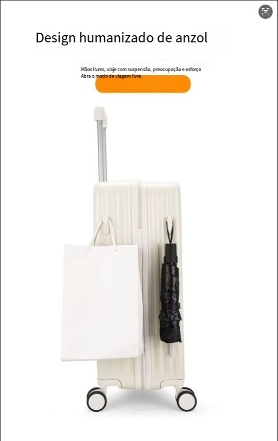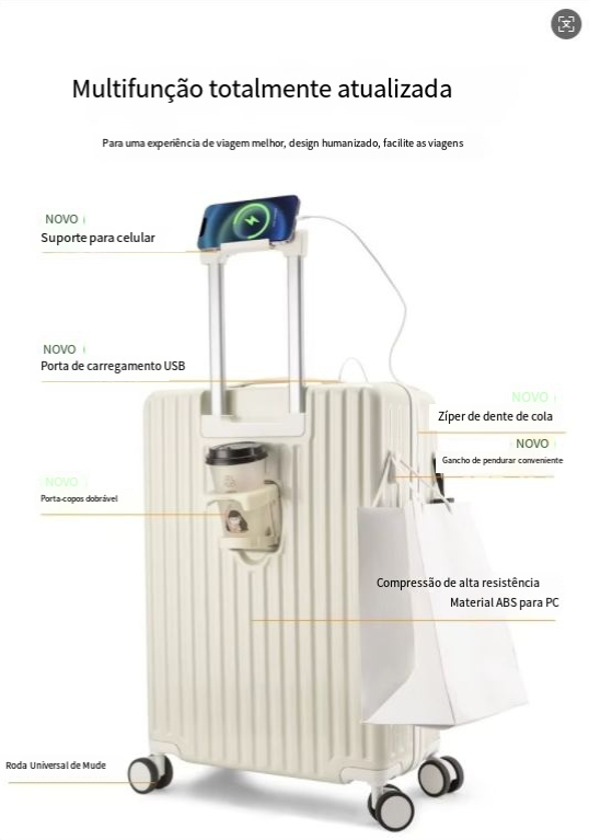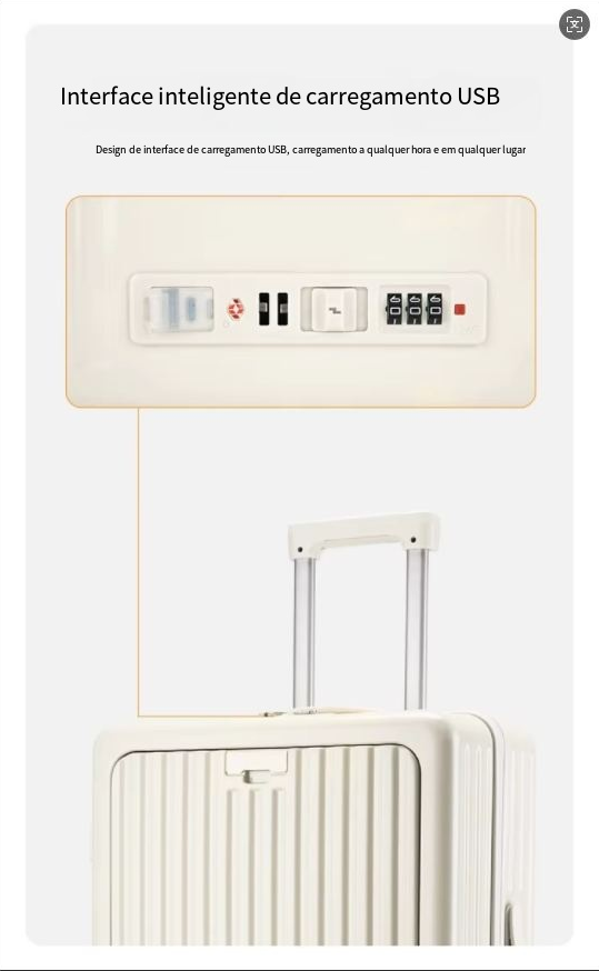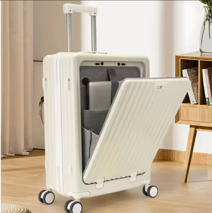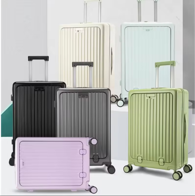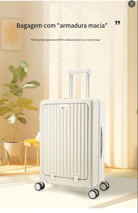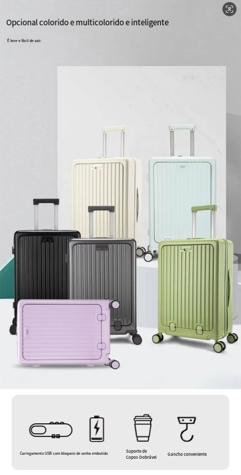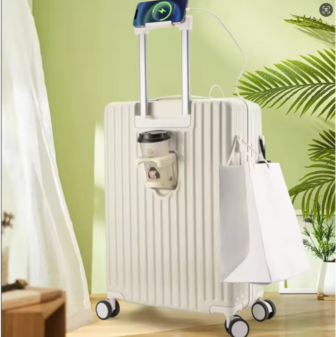 24 polegadas clássico listrado frente aberto material AbS bagagem de viagem com porta-copos, bloqueio de segurança, caso de viagem com função de carregamento USB