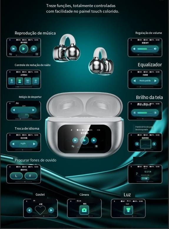 Fones de ouvido AI tradutor, fones de ouvido ao vivo tradutor, fones de ouvido de tela de toque, fones de ouvido bluetooth tipo clipe de ouvido, fones de ouvido com qualidade de som HIFI, fones de ouvido assistente de voz inteligente, fones de ouvido de cancelamento de ruído de chamada hd, fones de ouvido de longa duração, fones de ouvido de intérprete de viagem ao exterior