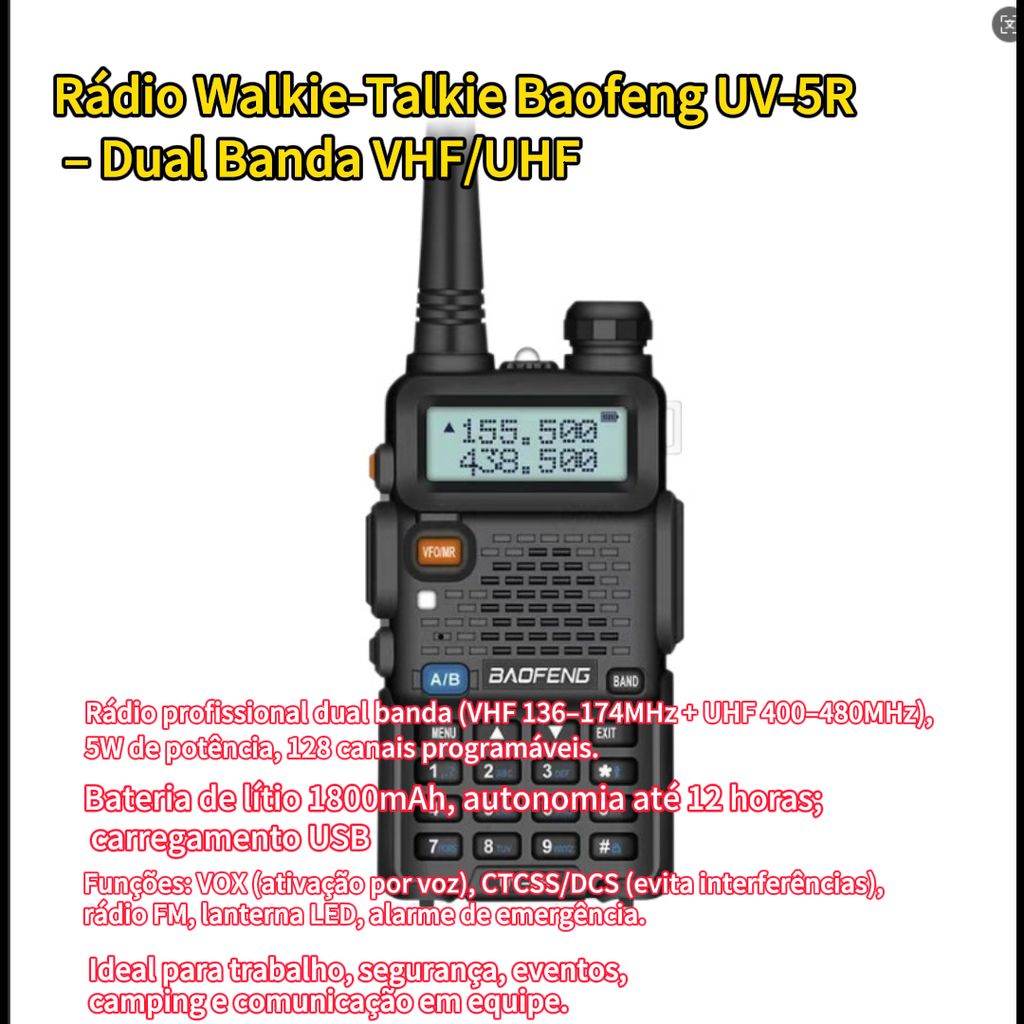 Baofeng UV-5r intercomunicador de banda dupla, longa duração durável e portátil, comando de local de emergência ao ar livre, serviço de hotel patrulha de propriedade especial, comercial civil, clear talk intercom