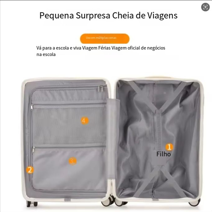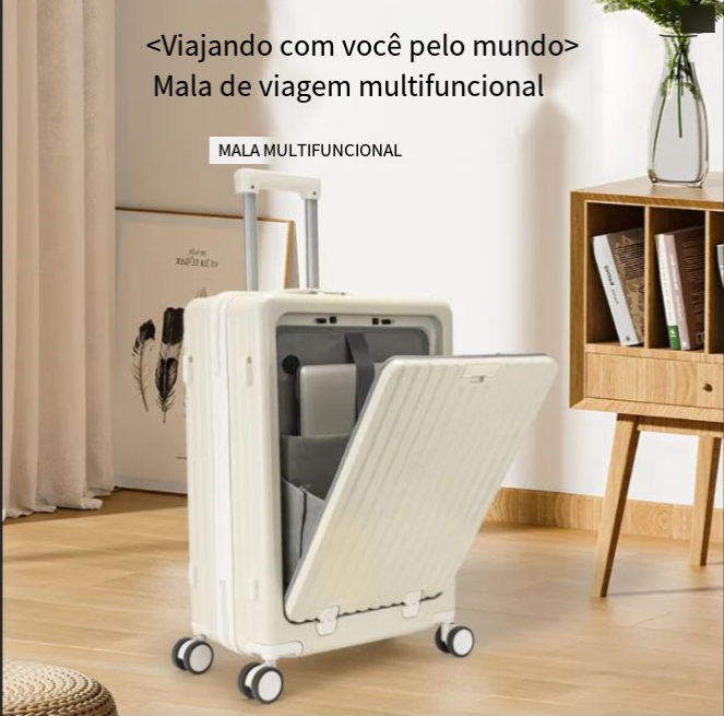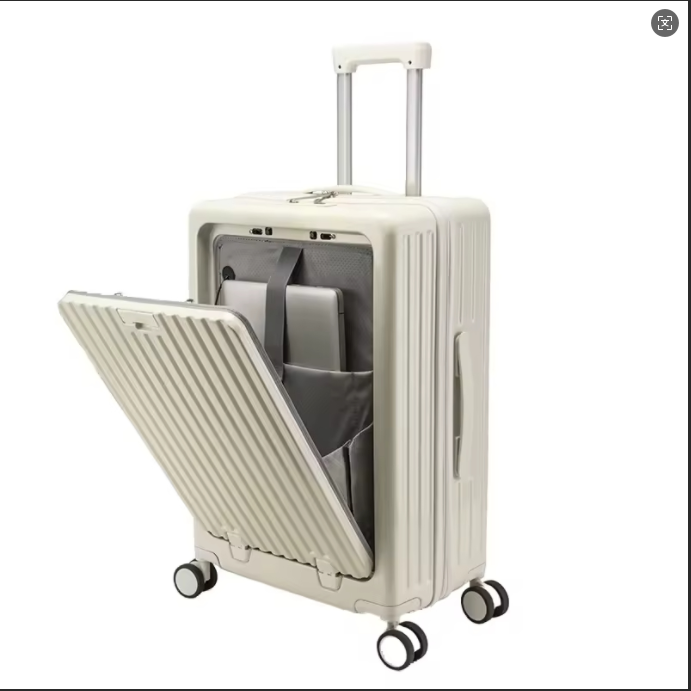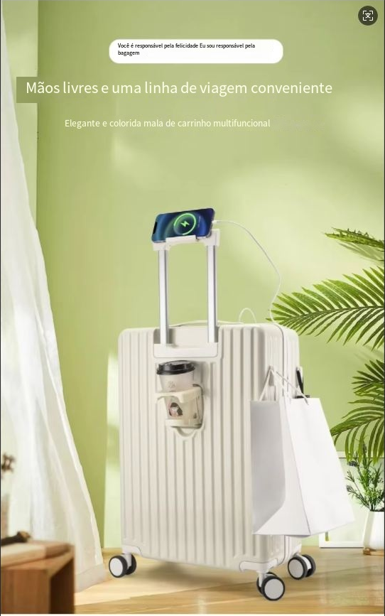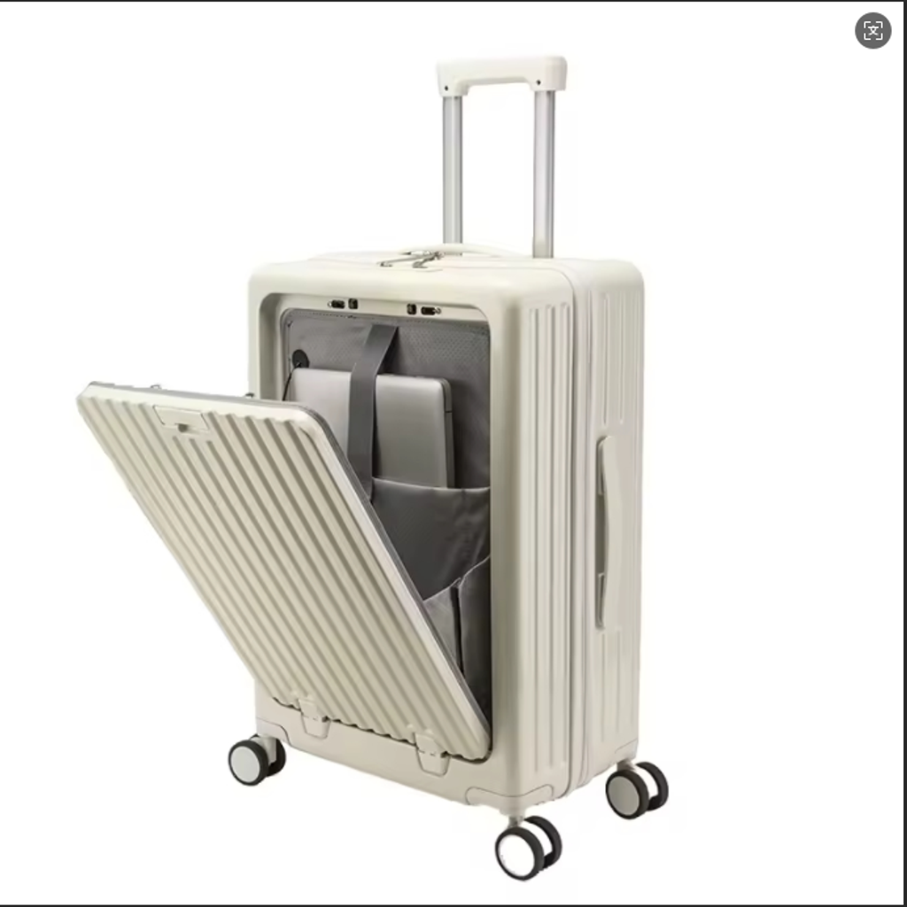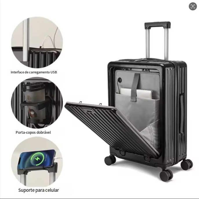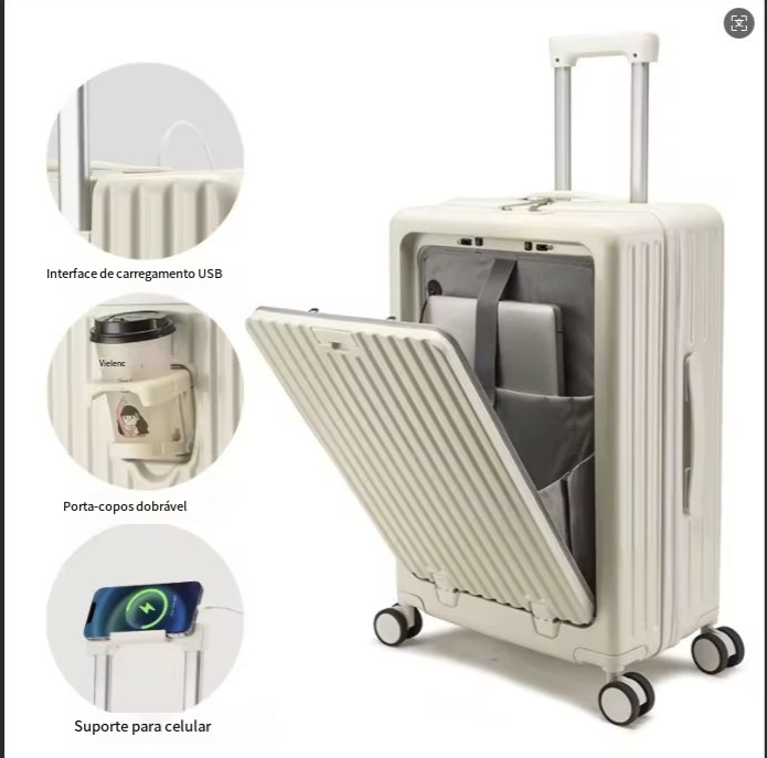 24 polegadas clássico listrado frente aberto material AbS bagagem de viagem com porta-copos, bloqueio de segurança, caso de viagem com função de carregamento USB