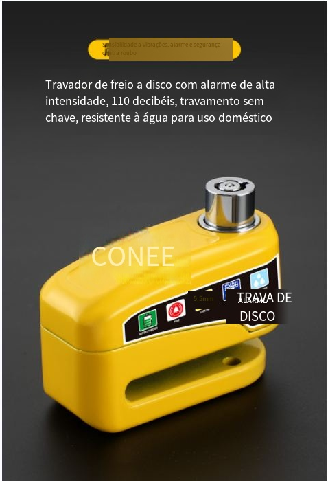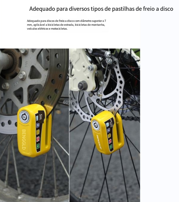 Bloqueio de freio de disco de alarme de bicicleta preta bloqueio de freio de disco de motocicleta elétrico bloqueio de freio de disco de alarme de bicicleta de montanha bloqueio de disco