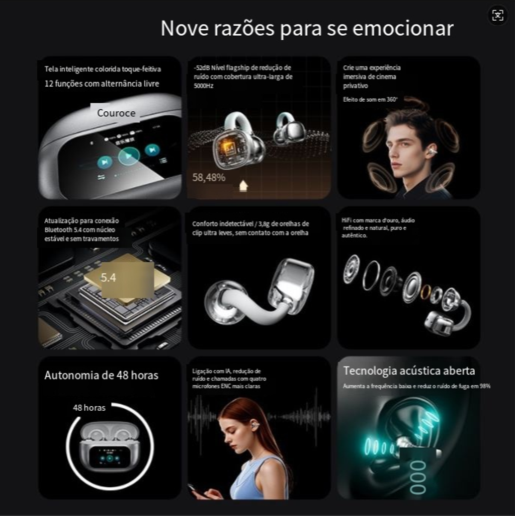 Fones de ouvido AI tradutor, fones de ouvido ao vivo tradutor, fones de ouvido de tela de toque, fones de ouvido bluetooth tipo clipe de ouvido, fones de ouvido com qualidade de som HIFI, fones de ouvido assistente de voz inteligente, fones de ouvido de cancelamento de ruído de chamada hd, fones de ouvido de longa duração, fones de ouvido de intérprete de viagem ao exterior